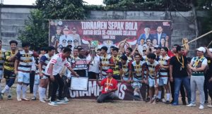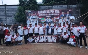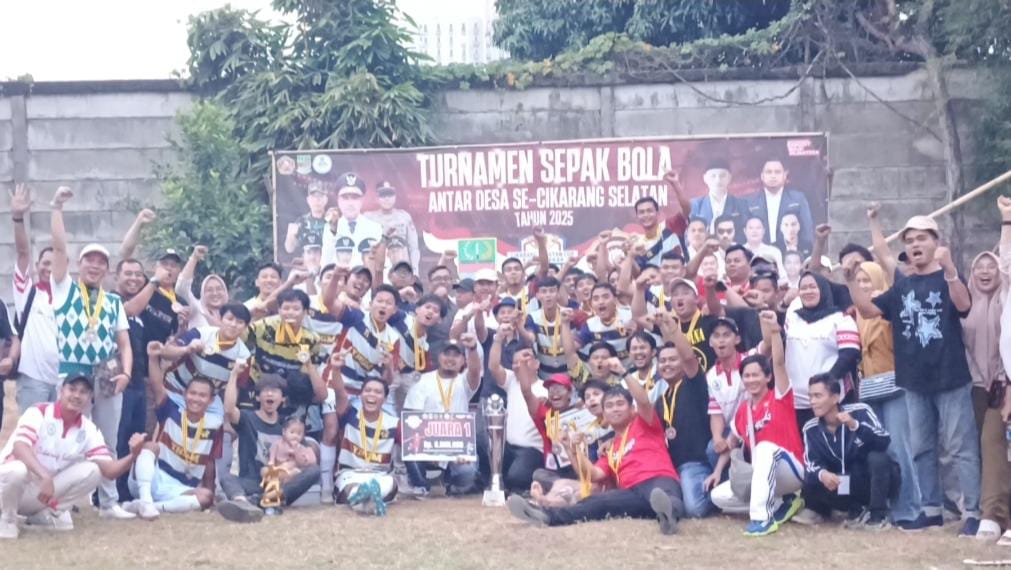 Cikarang Selatan – Sorak sorai penonton menggema di Lapangan Sepak Bola Desa Pasir Sari, Kecamatan Cikarang Selatan, Kabupaten Bekasi, Minggu (5/10/2025) sore. Tim Kesebelasan Desa Serang berhasil menorehkan prestasi gemilang dengan menaklukkan Tim Kesebelasan Desa Suka Sejati dalam laga final Turnamen Sepak Bola Piala Super Karangtaruna Se-Kecamatan Cikarang Selatan.