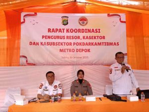 DEPOK, SWARAJABAR.ID — Suasana penuh keakraban mewarnai kegiatan Rapat Koordinasi dan Konsolidasi yang digelar Pokdarkamtibmas Resort Metro Depok di Kantor Sekretariat Bersama Pokdarkamtibmas,Sabtu pagi (18/10/2025).Kegiatan ini mempertemukan pengurus resor dengan para ketua sektor dan kasubsektor se-wilayah hukum Polres Metro Depok.
