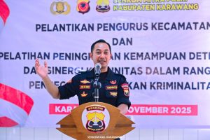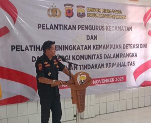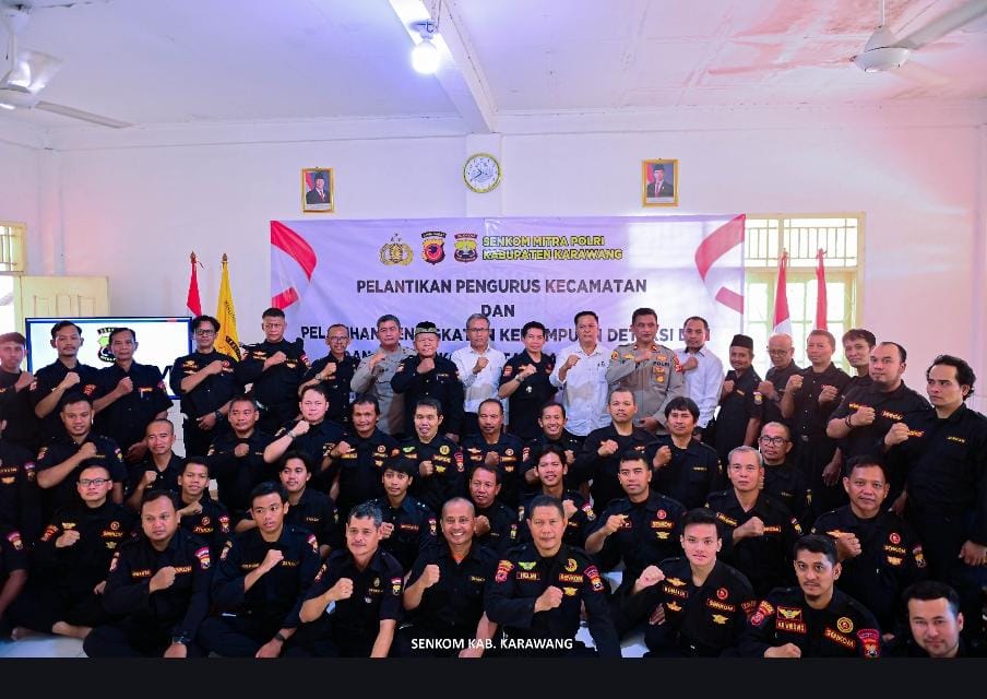 Karawang – Sentra Komunikasi (SENKOM) Mitra Polri Kabupaten Karawang menggelar Pelantikan Pengurus Kecamatan sekaligus Pelatihan Peningkatan Kemampuan Deteksi Dini dan Sinergi Komunitas dalam Pencegahan Tindak Kriminalitas. Kegiatan berlangsung di Rawagabus, Kecamatan Karawang Timur, Kabupaten Karawang, Senin (24/11/2025).