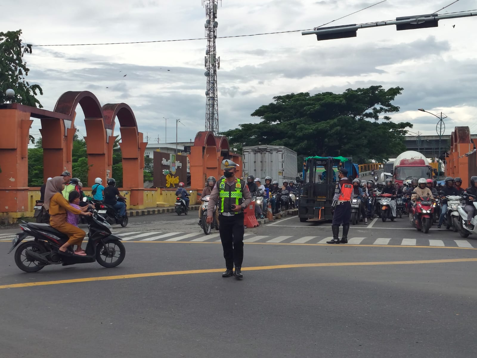 Pengaturan lalu lintas dipimpin oleh IPTU J. Warman L, selaku Kanit Lantas Polsek Cikarang Pusat, dengan didukung personel Aipda A. Dede dan Bripka Endang K. Kehadiran petugas di lapangan bertujuan memastikan arus kendaraan tetap mengalir lancar sekaligus meningkatkan keselamatan para pengguna jalan.