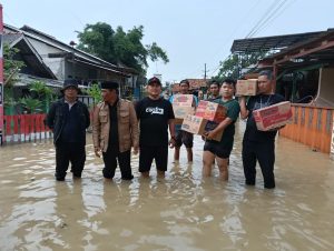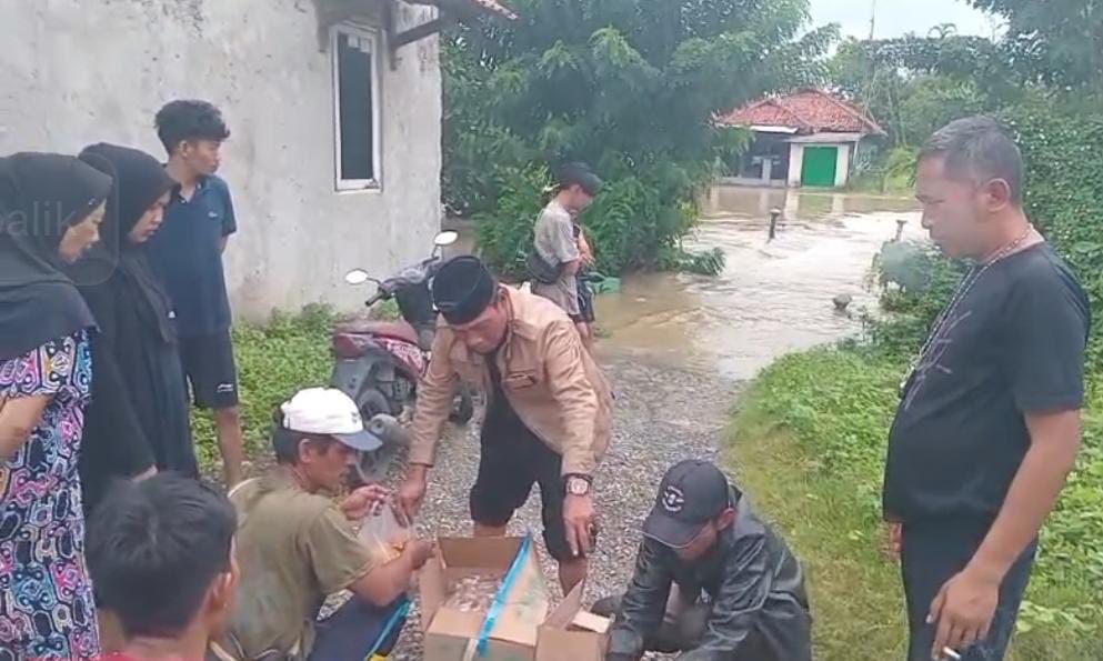 Memasuki pagi hari, tanpa jeda istirahat, H. Bao Umbara turun langsung meninjau titik-titik lokasi rawan banjir. Dengan menyusuri permukiman warga yang terdampak, ia tidak hanya melakukan pemantauan, tetapi juga membagikan roti dan nasi bungkus kepada warga sebagai penguat tenaga di tengah situasi darurat.