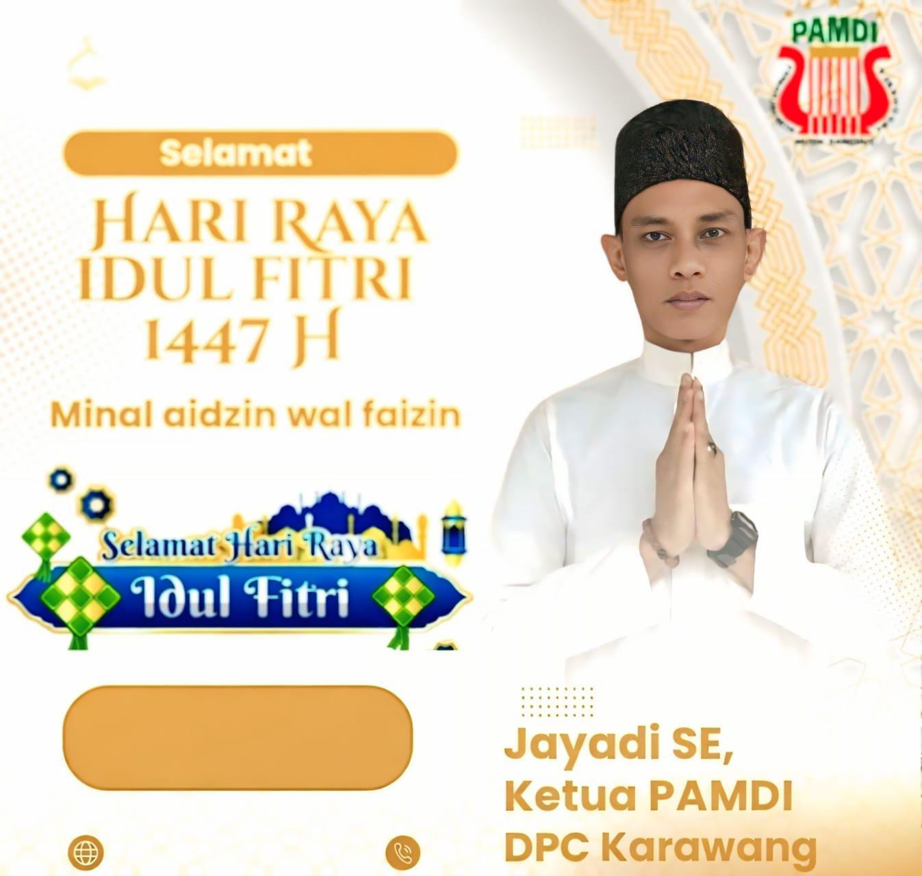 Kabupaten Karawang — Dalam suasana hangat dan penuh keakraban bersama keluarga, Jayadi selaku Ketua Persatuan Artis Musik Dangdut Indonesia (PAMDI) Kabupaten Karawang menyampaikan ucapan Selamat Hari Raya Idul Fitri 1447 Hijriyah pada Jumat (20/3/2026).