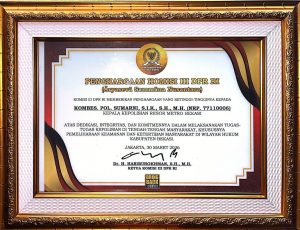 Bekasi – Dedikasi dan pengabdian tanpa lelah dalam menjaga keamanan serta merawat harmoni sosial akhirnya berbuah penghargaan bergengsi. Kapolres Metro Bekasi, Kombes Pol Sumarni, menerima anugerah Aryaseva Sammana Nusantara dari Komisi III DPR RI sebagai bentuk apresiasi atas kinerja luar biasa dalam mengayomi masyarakat.
