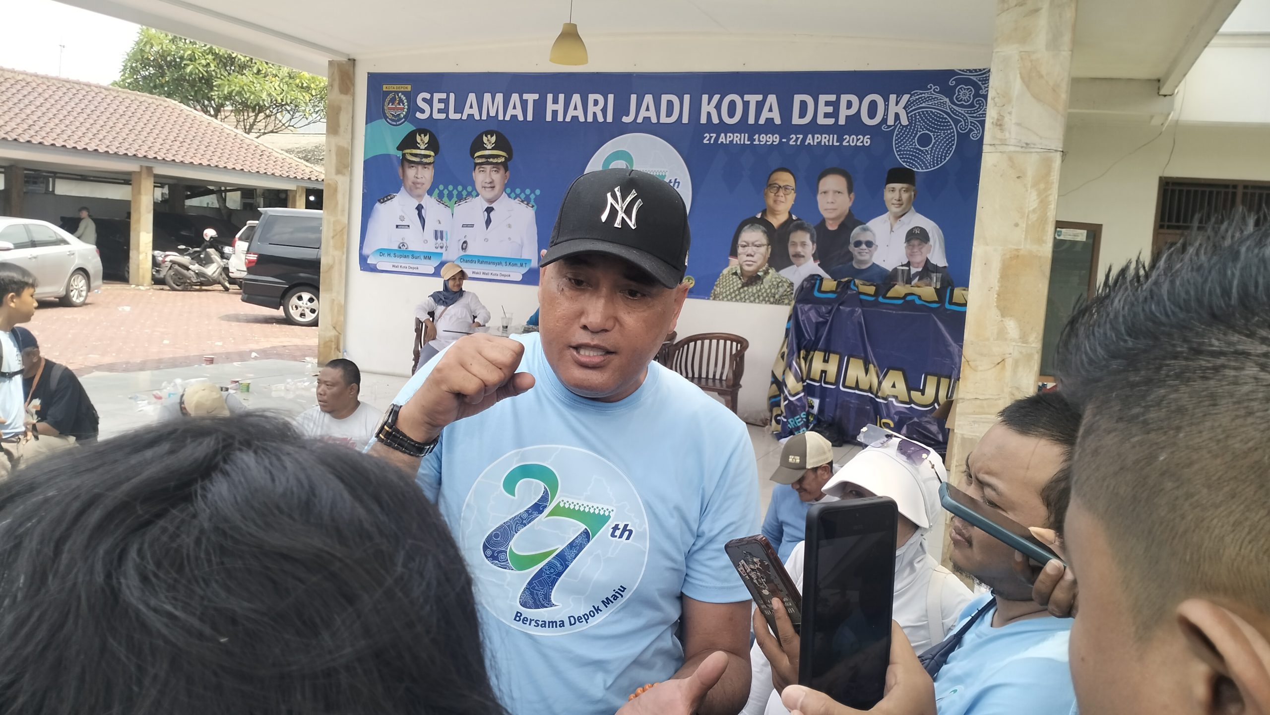 Puncak Kemeriahan Hari Ulang Tahun atau HUT ke-27 Kota Depok di wujudkan melalui gelaran jalan santai massal yang berpusat di Balai Sarmili, Jalan Kemakmuran Raya, Kelurahan Mekarjaya, Kecamatan Sukmajaya, Minggu pagi ,26 April 2026.